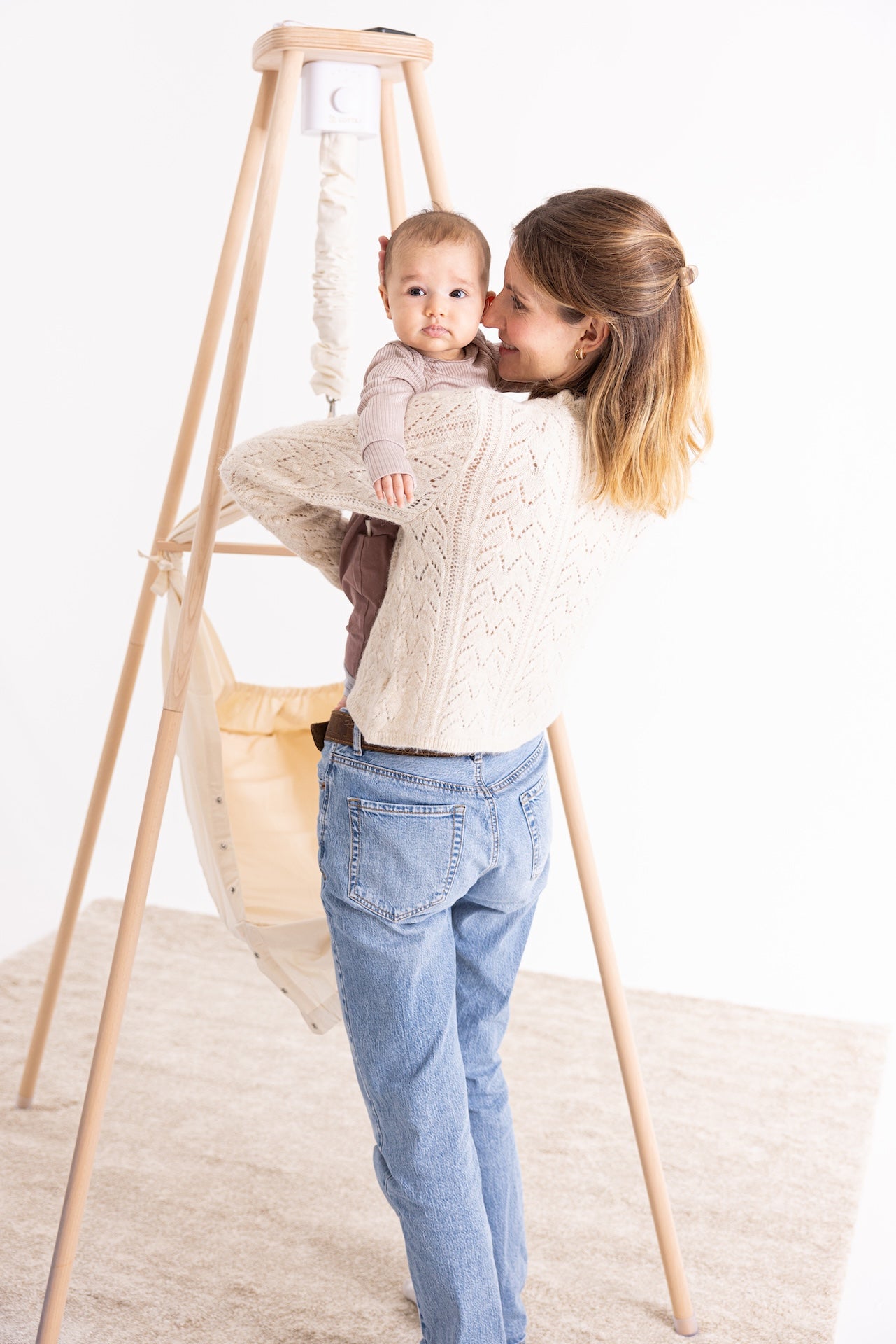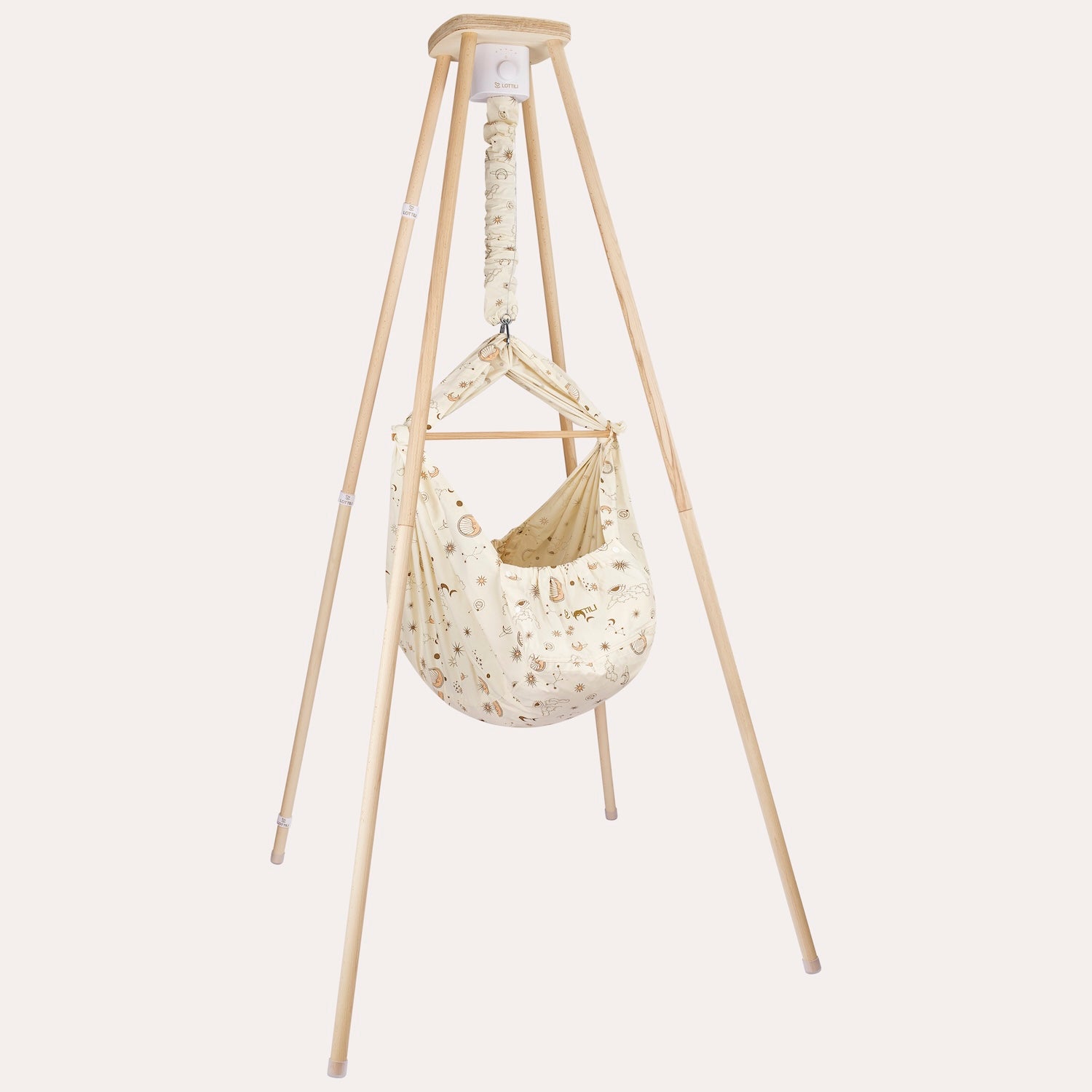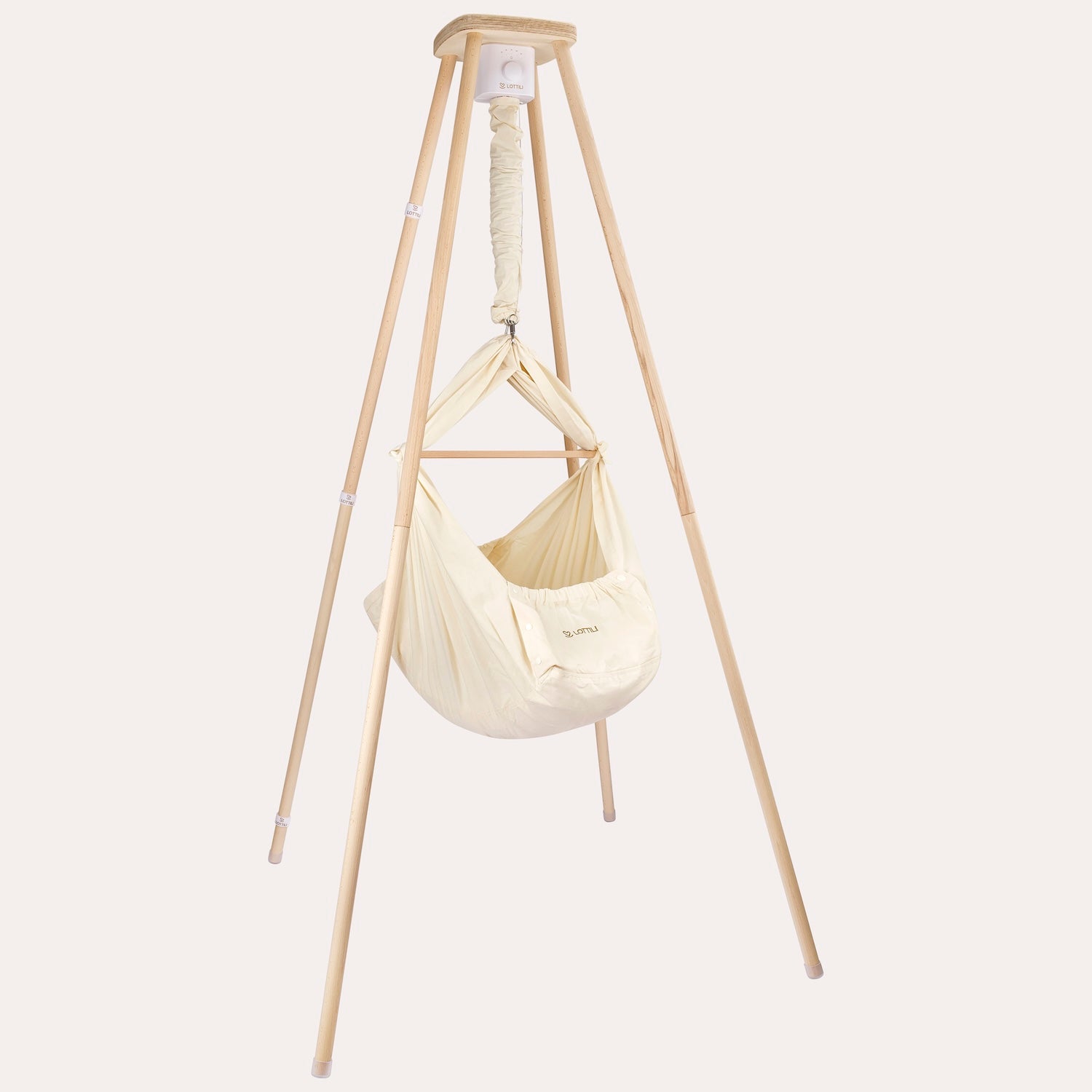 One Baby Hammock is a special type of cradle that is suspended from a spring and moves up and down. These gentle up and down movements are particularly soothing for babies and remind them of the gentle movements in the womb. Baby Hammock The classic cradles have become popular worldwide in recent years, although they were originally common in South East Asia. The classic set of Baby Hammock with motor and frame from Lottili offers you and your child an innovative Baby Hammock with a focus on comfort and safety.