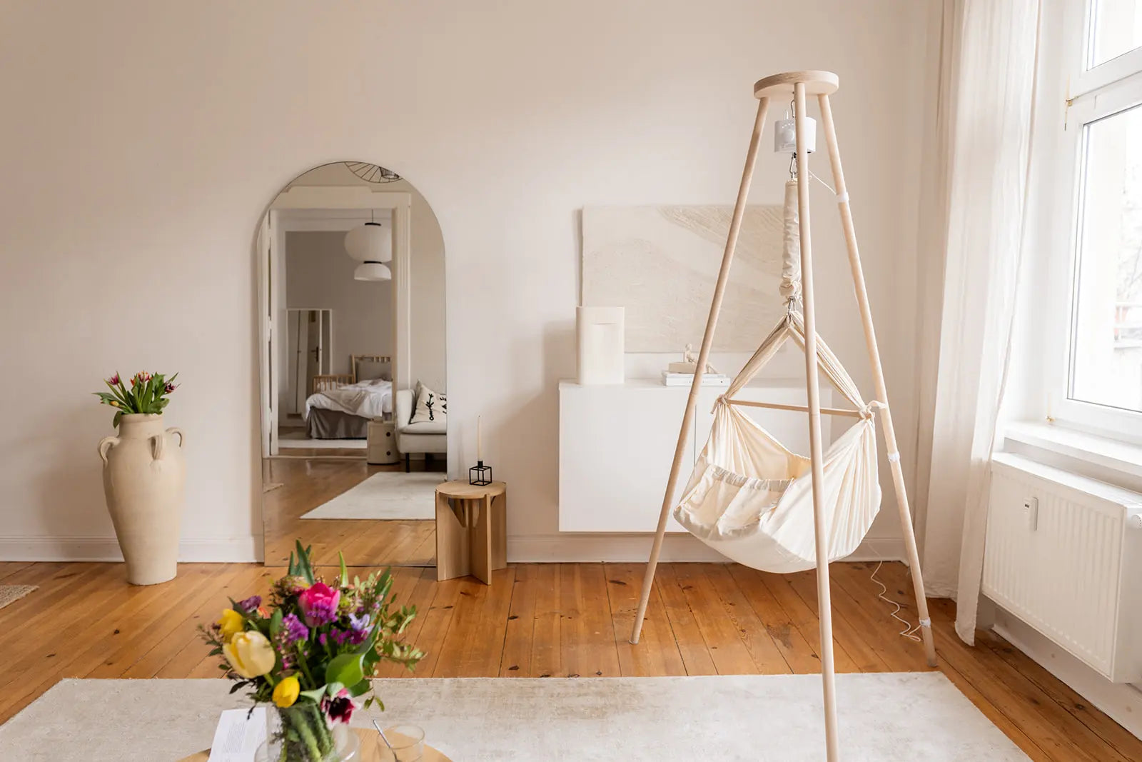 With a Baby Hammock you are very flexible. It can be set up anywhere and easily taken with you. Whether next to the sofa, in the kitchen, in the children's room or next to the bed, you can decide for yourself.